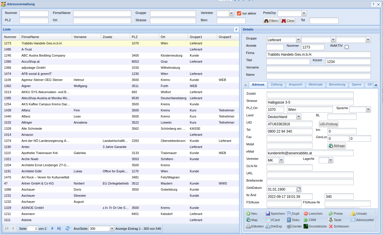 Hier werden alle Adressen ( Kunden und Lieferanten ) gemeinsam verwaltet.